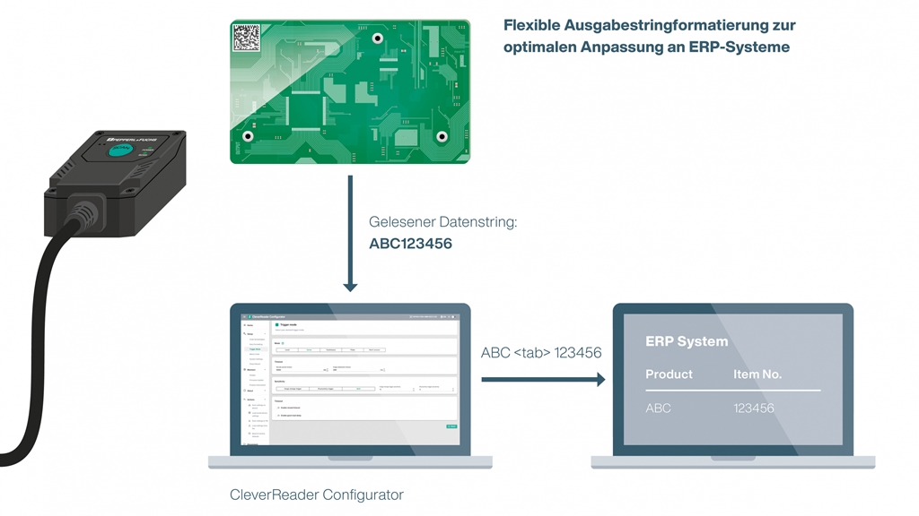 A kimeneti karakterlánc úgy alakítható, hogy a beolvasott adatok közvetlenül az ERP rendszerbe kerüljenek. Az alkalmazások körét tovább bővítik az olyan funkciók, mint az automatikus hibakép-memória, az egyeztetési kód és a különböző olvasási üzemmódok. A nagy teljesítményű VOI1100 verzió akár 3,5 m/s sebesség mellett képes beolvasni a mozgásban lévő kódokat, emellett a közvetlenül alkalmazott kódokat (Direct Part Marking, DPM) is felismeri. Az alapváltozatnak számító VOI1000 statikus alkalmazásokban olvas megbízhatóan. Egyedülálló ár-érték aránya révén a CleverReader kivételesen költséghatékony megoldásnak számít a maga kategóriájában.